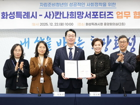 [정도일보 김현섭 기자] 화성시는 22일 사단법인 칸나희망서포터즈와 ‘자립준비청년의 성공적인 사회 정착을 돕기 위한 법률 지원 업무 협약’을 체결했다. 이날 시청 중앙회의실에서 열린 협약식에는 정명근 화성특례시장을 비롯해 양소영 칸나희망서포터즈 이사장 등이 참석했다. 이번 협약은 이른 시기에 홀로서기를 시작해 주거, 근로, 금융 등 법률적 문제에서 어려움을 겪는 자립준비청년을 지원하기 위해 추진됐다. 자립준비청년은 아동양육시설, 가정위탁으로 보호를 받은 아동 중 보호가 종료되는 청년을 말한다. 협약에 따라 시는 자립을 준비하는 과정에서 겪을 수 있는 법적 문제에 대해 법률 지원이 필요한 자립준비청년들을 칸나희망서포터즈에 연계하고, 칸나희망서포터즈는 이들에게 법률 상담 등 직접적인 법률 상담을 지원한다. 정명근 화성특례시장은 “화성특례시는 이번 협약을 통해 칸나희망서포터즈와 자립준비청년의 안정적인 사회 정착을 위해 긴밀한 협력 체계를 구축하겠다”며 “자립준비청년의 사회구성원으로의 진정한 자립을 위해 함께 힘을 모아주시길 바란다”고 말했다.