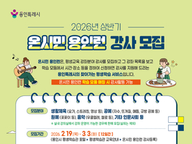 [정도일보 김제영 기자] 용인특례시는 19일부터 3월 3일까지 시민이 원하는 시간과 장소로 강사가 찾아가는 배달학습 ‘온시민 용인런’ 강사를 모집한다고 밝혔다. ‘온시민 용인런’은 시민이 자발적으로 구성한 학습 모둠에 강사가 직접 찾아가 교육을 제공하는 생활밀착형 평생학습 프로그램이다. 시는 올해부터 운영 횟수를 연 2회(상·하반기)로 정례화했다. 이번 모집은 4월부터 운영될 상반기 교육 과정을 이끌어갈 역량 있는 강사를 선발하기 위해 마련됐다. 상반기 강사로 등록되면 학습 모둠과의 매칭을 통해 4월부터 6월까지 강의를 진행하게 된다. 강의 시간은 총 16시간 이내로, 수업 방식에 따라 1시간 기준 8회 또는 2시간 기준 4~8회 내외로 탄력적인 운영이 가능하다. 모집 분야는 ▲공예 ▲원예 ▲음악 ▲생활체육 ▲인문사회 등이다. 해당 분야 전문 자격을 갖춘 용인시민이라면 누구나 지원할 수 있다. 강사 등록은 연중 상시 가능하지만, 이번 상반기 강좌 운영은 반드시 정해진 모집 기간(2월 19일~3월 3일) 내에 등록을 완료한 강사에 한해 연결이 진행된다. 지원을 원하는 시민은 용인시평생학습관 누리집(https://lll.yongin.go.kr) 온시민 용인런 강