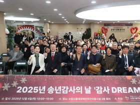 [정도일보 고정희 기자] 수원특례시의회(의장 이재식)는 4일(목),‘홍재장애인주간보호시설 송년 감사의 날’에 참석해 한 해 동안 시설을 위해 함께해온 이용자와 가족, 후원자, 자원봉사자들에게 감사의 뜻을 전했다. 이번 행사는 이재식 의장을 비롯한 장정희 기획경제위원장, 이희승 보건복지위원장, 김은경 의원, 후원자, 자원봉사자, 이용자 및 가족 등이 함께해 한 해의 노고를 격려하고 따뜻한 시간을 나눴다. 이재식 의장은 “보이지 않는 자리에서 큰 힘이 되어주신 여러분 덕분에 이용자분들의 안전과 행복을 돌보고, 자립을 돕는 든든한 공간으로 자리잡을 수 있었다”며 “송년 감사의 날이 많은 분들의 정성과 참여로 더욱 따뜻하고 뜻깊게 채워질 수 있었다”고 전했다.