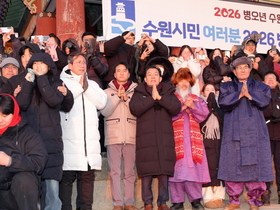 이재준 수원특례시장은 1일 아침 팔달산 서장대에서 시민들과 함께 해맞이를 하고, “시민 여러분께서 소망하시는 모든 것을 성취하시길 기원하겠다”고 말했다. [정도일보 고정희 기자] 이재준 시장은 “올해도 시민 여러분과 함께 수원을 더 새롭고, 더 빛나게 만들기 위해 노력하겠다”며 “모든 시민이 수많은 역사와 희망을 만드는 멋진 한 해가 되길 바란다”고 기원했다. 서장대 일원을 가득 메운 시민들은 떠오르는 해를 보며 함께 소원을 빌었다. 수원시는 12월 31일 저녁부터 1월 1일 아침까지 일원에서 시민들과 함께하는 송년·신년 행사를 열었다. 12월 31일 밤 10시 30분부터 행궁광장 특설무대에서 ‘제야음악회’가 열렸다. 자정에는 여민각에서 제야 타종 행사를 열고 2026년 병오년(丙午年)의 시작을 알렸다. 이재준 시장, 이재식 수원특례시의회 의장, 김영진(수원시병)·김준혁(수원시정) 의원, 시민 대표 등이 타종했다. 이재준 수원시장과 김현수 제1부시장, 4개 구청장, 실·국장 등은 1일 오전 9시 현충탑을 참배했다.