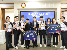 배정수 의장,2025 동트는 동해컵 프로볼링대회 석권한 팀 MK 글로리아 표창 수여