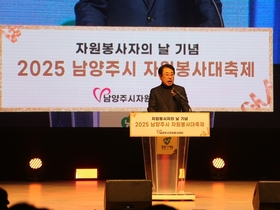 [정도일보 원수연 기자] 남양주시의회(의장 조성대)는 지난 6일 남양주체육문화센터 실내체육관에서 열린 ‘2025년 남양주시 자원봉사 대축제’에 참석해 올 한 해 헌신과 봉사에 힘쓴 자원봉사자들을 격려했다. 7일 시의회에 따르면 (사)남양주시자원봉사센터가 주최‧주관한 이날 행사는 지난 5일 자원봉사자의 날을 기념해 지역사회를 위해 헌신한 자원봉사자들의 노고를 기리고, 한 해 동안의 자원봉사 활동을 끝맺음하는 축제의 장으로 마련됐다. 조성대 의장과 시의원 및 주광덕 남양주시장, 관내 자원봉사자 등 1,300여명이 참석한 이날 행사에는 줌바댄스 ‘아이린줌바크루’ 식전공연을 시작으로 1부는 △자원봉사이그나이트 발표 △축하공연(캘리그래피 퍼포먼스‘캘리깡패’및 가수 연미연‧이효진)으로 진행됐다. 이어 2부는 △내빈소개 △수상자 활동 영상 상영 △우수자원봉사자 시상 및 축사 등과 부대행사로 자원봉사자 응원 포토존, 아트봉사단, 손마사지 봉사단, 느티나무 봉사단 등 다양한 부스가 운영됐다. 조성대 의장은 축사를 통해 “한 해 동안 지역 곳곳에서 묵묵히 헌신해 주신 자원봉사자 여러분께 깊은 감사와 존경의 인사를 드리며, 우리시 인구 28%에 해당하는 20만명의 자원봉사자들께