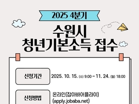 수원시, ‘2025년 4분기 청년기본소득’ 내일부터 11월 24일까지 접수