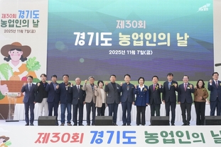 [정도일보 김제영 기자] 경기도는 7일 수원 국립농업박물관 광장에서 ‘제30회 경기도 농업인의 날 기념식’을 개최했다. 올해 기념식은 농경문화의 역사성 의미가 있는 국립농업박물관에서 열렸으며 고영인 경기도 경제부지사를 비롯해 정윤경 경기도의회 부의장, 방성환 농정해양위 위원장, 농업인단체와 유관기관 등 250여 명이 참석했다. 기념식에서는 경기도 농어업분야 최고의 상인 ‘경기도 농어민대상’ 14개 부문 수상자 16명과 농업발전 유공 수상자 3명, ‘2025년 시‧군 농정업무’ 우수 10개 시군에 표창을 수여했다. 경기도 농어민대상은 농어업분야에서 기술 개발과 고품질화로 농업 경쟁력 향상과 소득증대, 수출진흥 등을 위해 노력하거나 공헌한 농어민 또는 생산자단체에게 수여한다. 1994년부터 2024년까지 총 342명이 수상했다. 올해 수상자 16명은 ▲식량작물부문 여주시 이은규 ▲원예작물부문 광주시 한상우 ▲특용작물부문 연천군 심우일 ▲수산부문 가평군 김지용 ▲한우부문 이천시 공준식, 광주시 광주한우영농조합 ▲낙농․육우부문 이천시 박찬훈 ▲양돈부문 연천군 오명준 ▲가금 및 기타가축부문 김포시 이진유 ▲여성농어민 부문 가평군 김금순 ▲청년농어민부문 여주시 오성일