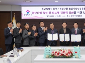 [정도일보 김제영 기자] 용인특례시는 19일 시청 접견실에서 한국기계연구원(KIMM), 용인시산업진흥원과 ‘첨단산업 육성 및 반도체 경쟁력 강화를 위한 업무협약’을 체결했다. 이날 협약은 기업 단독으로는 활용이 어려운 국가 연구 인프라를 지역 기업이 활용할 수 있도록 하고자 마련됐다. 협약 내용은 ▲첨단산업 분야 연구개발·상용화 상호 협력 ▲소부장 기업 기술 실증(시험·평가·인증 등)·사업화 지원 추진 ▲첨단산업 분야 정부 기반 구축 사업·연구개발(R&D) 공모사업 유치 협력 ▲한국기계연구원 시설·연구개발 장비 등 활용 사업 ▲첨단기술 활용 맞춤형 R&D 정책 과제 기획·추진 등이다. 협약에 따라 용인지역 기업은 국가 연구기관의 시험·평가 인프라를 활용한 실증화와 사업화 등 실질적 지원을 받을 수 있게 된다. 시는 이번 협약을 계기로 용인에 유치한 한국전자통신연구원, 용인지식재산(IP)지원센터, 인공지능(AI)무역센터와 함께 지·산·학·연 협력 기반을 기업 성과 중심으로 한 단계 끌어올린다는 방침이다. 이상일 시장은 “용인의 반도체산업 경쟁력 강화를 위해 한국기계연구원이 우리 시, 용인시산업진흥원과 협약을 맺어 용인지역 기업들의 한국기계연구원