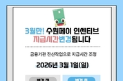 [정도일보 고정희 기자] 수원특례시(시장 이재준)가 3월 수원페이 인센티브를 1일 오후 3시부터 지급한다. 수원페이 인센티브 지급 시작 시각은 매달 1일 오전 9시였지만, 3월 1일 금융기관 전산 작업으로 인해 오후 3시로 늦춰진다. 4월부터는 다시 1일 오전 9시부터 지급한다. 인센티브는 3월 1일 오후 3시부터 예산이 소진될 때까지 지급한다. 1인당 충전 한도는 50만 원이고, 인센티브는 10%다. 50만 원을 충전하면 인센티브 5만 원을 받을 수 있다. 1인당 수원페이 보유 한도는 100만 원이다. 잔액을 소비해야 여유분만큼 충전할 수 있다. 수원페이는 경기지역화폐 앱이나 오프라인 충전소에서 충전할 수 있다. 오프라인 충전소는 공휴일에는 운영하지 않으므로 유의해야 한다. 오프라인 충전소 목록은 수원시 홈페이지(www.suwon.go.kr)에서 ‘수원시 지역화폐’를 검색해 공지사항 게시판에서 확인할 수 있다.