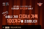 [정도일보 고정희 기자] 수원시가 다자녀 가구의 스포츠 경기 관람을 지원하는 ‘수원시민 가족응원데이’를 진행한다. 이번 관람 지원 경기는 5월 6일 열리는 수원종합운동장에서 열리는 수원 FC 대 대구 FC의 축구 경기다. 4월 30일 오전 9시부터 다자녀 가구 100가구를 대상으로 선착순 신청을 받는다. 홍보물 포스터에 있는 큐알(QR)코드에 연결된 웹페이지에서 신청하면 된다. 자세한 내용과 일정은 수원시 홈페이지'수원소식'시정소식 게시판에서 확인할 수 있다. 수원시민 가족응원데이는 지역 연고 스포츠 구단 지원으로 수원시에 거주하는 다자녀 가구(2자녀 이상)를 스포츠 경기에 초청하는 저출생 대응 사업이다. 지난 4월 8일에는 다자녀 가구 100가구를 대상으로 수원 KT소닉붐 대 부산 KCC이지스의 농구 경기 관람을 지원한 바 있다. 수원시 관계자는 “부모와 아이들이 함께 경기를 관람하며 좋은 추억을 남기길 바란다”며 “다자녀 가구에 다양한 스포츠를 관람할 기회를 제공하겠다”고 밝혔다.