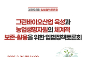 [정도일보 김제영 기자] 경기도의회는 오는 2월 24일 오후 2시 연천군 종합복지관 3층 소강당에서 「그린바이오산업 육성과 농업생명자원의 체계적 보존·활용을 위한 입법정책토론회」를 개최한다. 이번 토론회는 경기도의회 농정해양위원회 윤종영 부위원장이 좌장을 맡아 발제 및 토론을 진행하고, 제도적 개선 방향에 대한 의견을 종합·정리할 예정이다. 행사는 연천군이 경기도 그린바이오산업 북부 육성지구로 지정된 이후, 농업생명자원의 보존·관리 체계와 산업적 활용 방안을 종합적으로 검토하기 위해 마련됐다. 이날 발제는 최춘환 경기도경제과학진흥원 바이오연구개발팀 책임연구원과 최익영 강원대학교 스마트팜농산업학과 교수가 맡아 농업생명자원의 산업화 가능성과 정책적 지원 방향을 제시한다. 이어지는 토론에는 그린바이오산업 기업체 대표, 엄기만 경기도 바이오산업과장, 황인순 경기도 친환경농업과장, 정윤경 경기도농업기술원 선인장다육식물연구소장, 이현주 연천군 경제교통과장이 참여해 다각적인 정책 과제를 논의할 예정이다. 한편, 이번 토론회에서 제시된 의견은 농업생명자원 관련 제도 개선 및 조례 입법 방향 검토에 반영될 예정이다.