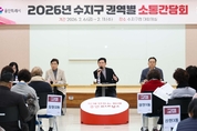[정도일보 김제영 기자] 이상일 시장은 9일 수지구청 대회의실에서 오전·오후로 나눠 상현1·2·3동과 신봉·성복동 주민들을 대상으로 권역별 소통간담회를 열고, 주민 대표 80여 명과 지역 현안에 대해 의견을 나눴다. 이 시장은 “매년 현장에서 시민들과 직접 만나고 있는데, 지난해에는 구별로 간담회를 진행했고 올해는 생활권 중심으로 묶어 소통하고 있다”며 “이웃 동네에서 어떤 일이 있었는지 함께 듣고 공감할 수 있어 좋다는 반응이 많다”고 말했다. 오전 간담회에서 상현1‧2‧3동 주민들은 ▲상현동 일원 전신주·전선 지중화 ▲겨울철 통학로 안전 강화 ▲상현공원 등 노후 공원 정비 ▲상현3동 광교 스포츠센터 복합시설 조기 건립 ▲소규모 공원·보행시설 개선 ▲공원 내 편의시설 확충 등을 건의했다. 상현동 주민은 “상현 아이파크 5단지부터 상현교차로로 이어지는 구간은 학생들의 통학로이자 주민 통행이 많은 곳인데, 전선이 늘어져 있어 안전사고 우려가 크다”며 전주 지중화를 요청했다. 시 관계자는 “전주 지중화사업은 매년 6~7월 한전에서 사업 신청 공문이 내려오면 신청 절차를 진행하게 된다”며 “올해 해당 구간을 신청할 수 있도록 하겠다”고 했다. 이 시장은 “지중화는