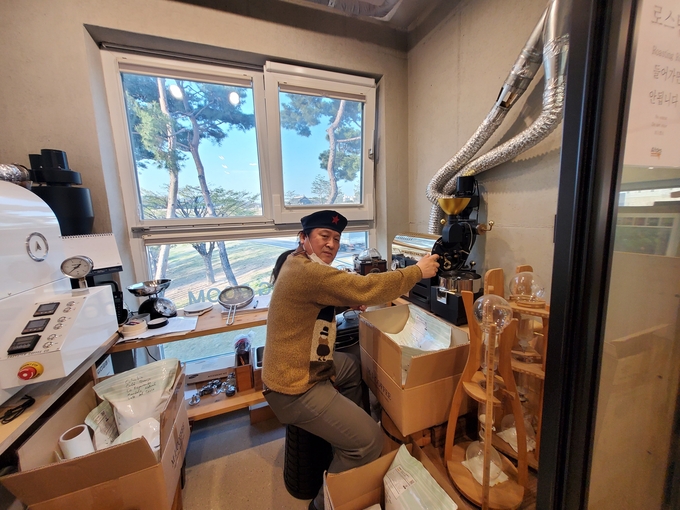 "10년전 일본 콘서트관람 여행중 커피 맛에 빠졌다. 돌아오자마자 커피를 배워야겠다고 생각하고 커피에 관련된 공부를 시작했다. 바리스타, 로스팅, 커핑, 핸드드립 등 3년 정도에 걸쳐 배웠다. 무언가에 꼿히면 끝을 보는 성격이라 관심 분야에만 집중을 하먀 다른 것을 돌아보지 않는 성격이다. 이곳에서 판매하는 커피도 직접 로스팅을 한다."