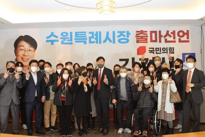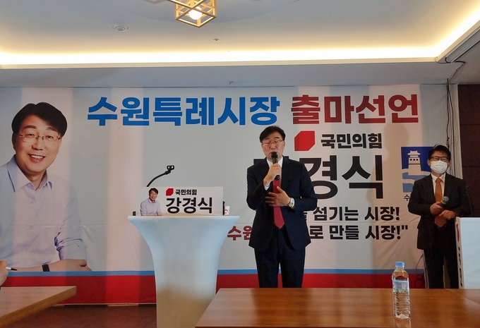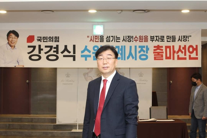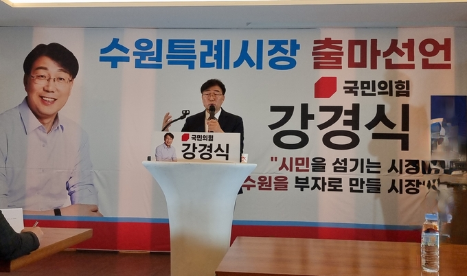 강경식 예비후보는 이날 오후 2시 수원월드컵경기장내 라메르아이 2층 아무르1실에서 김병찬 전 아나운서 사회로 수원특례시장 출마 선언을 했다.