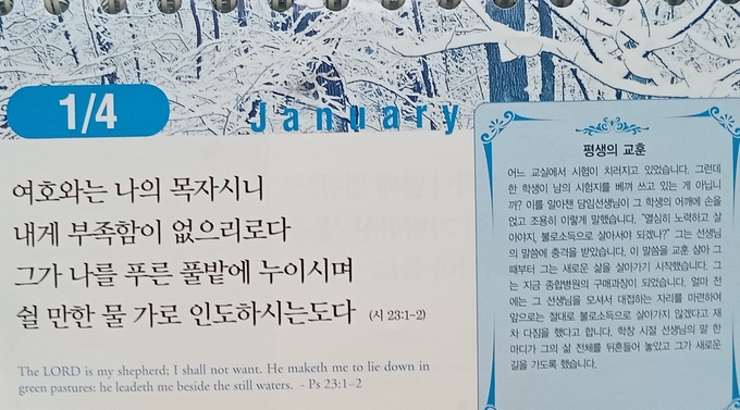 하루에 한 걸음을 걷더라도 포기하지 않으면 태산을 오를 수 있습니다. 몇 번이고 포기했던 경건생활이라도 포기하지 않고 다시 시작한다면 주님이 이끌어 주십니다. 경건의 끈을 놓지 말고 하루에 말씀 한 구절이라도 꾸준히 실행해 나가는 열정과 끈기를 품으십시오. 지금 나에게 맡겨진 일을 최고의 완성품을 만드는 마음으로 합시다.