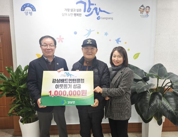 (정도일보) 양평군 강상배드민턴클럽은 지난 23일 강상면사무소에 이웃돕기 성금 100만원을 기탁했다.