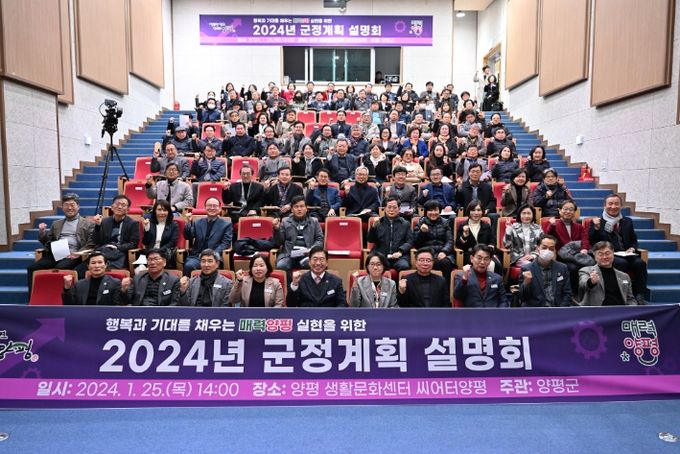 (정도일보) 전진선 양평군수가 25일 양평 생활문화센터에서 각종 위원회 건의 정책을 담은 ‘2024년 군정계획 설명회’를 개최했다.