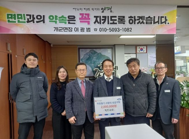 1952년 설립된 계전교회는 주민들의 도움이 필요한 곳에 성금 기부, 물품 나눔, 재능 기부 등을 통해 지속해서 이웃사랑을 실천하고 있다. 올해도 설 명절을 앞두고 개군면의 어려운 이웃을 위해 사용해달라며 성금을 전달했다.