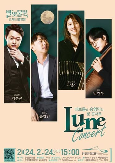 (정도일보) '별빛물빛 콘서트 in 양평'의 2024년 두 번째 무대는 피아니스트 송영민의 룬 콘서트로, 오는 2월 24일 15시 양평문화재단 2층 씨어터 양평에서 열린다.
