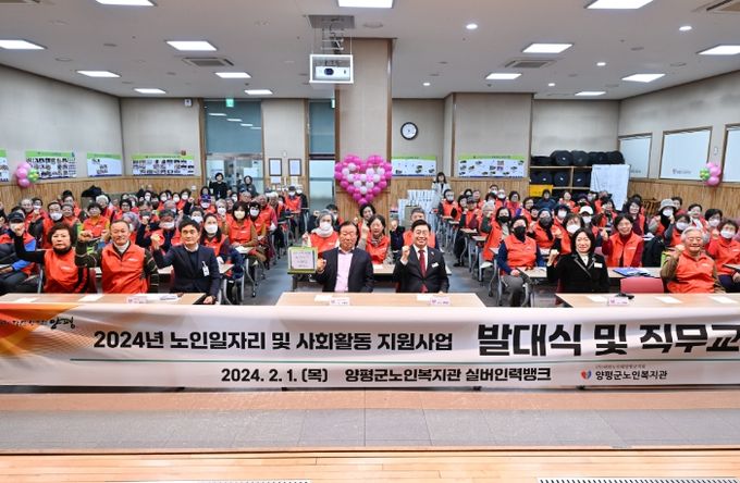 (정도일보) 양평군이 지난 1월 30일 양평군종합사회복지관을 시작으로 31일 행복만들기사회봉사단, 2월 1일 양평군노인복지관, 6일 사랑나눔봉사단에서 2024년 노인일자리사업 발대식을 개최해 본격적인 출발을 알렸다.