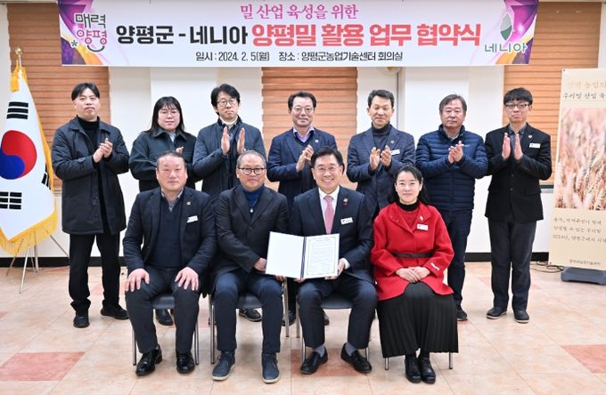 이날 협약을 통해 ㈜네니아는 군에서 생산되는 친환경 밀을 수매해 보관, 제품 생산 및 판매 유통에 활용하고 농업기술센터는 식량 자급률 향상을 위해 국산밀 생산을 확대하는 등 긴밀한 협조 관계를 맺기로 했다.
