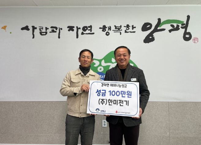(정도일보) 양평군 소재의 ㈜한미전기는 13일 강하면사무소를 방문해 어려운 이웃을 위해 써달라며 100만원을 기탁했다.