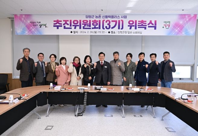 (정도일보) 양평군이 26일 군청 별관 소회의실에서 ‘양평군 농촌 신활력플러스사업’ 추진 위원 9명을 위촉했다고 밝혔다. 이번 추진위원회는 농업·생산, 식품·산업, 홍보마케팅, 행정 분야 전문가 9명으로 구성됐다.