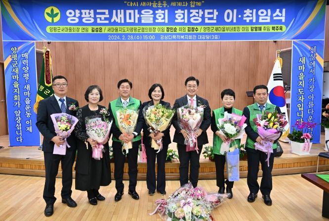 김창수 신임 군협의회장은 “전임회장의 뒤를 이어 우리 양평군새마을회가 더욱 발전할 수 있도록 지도자분들을 도와 최선을 다하겠다”고 말했으며, 박주옥 신임 군부녀회장은 “우리 군 새마을회의 업무와 역할에 충실해 회원들을 도와 열심히 활동하겠다”고 소감을 전했다.