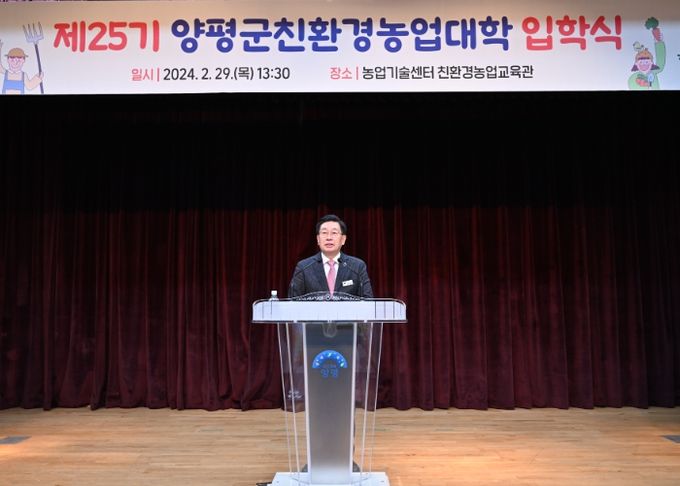 (정도일보) 양평군은 29일 농업기술센터 친환경농업교육관에서 제25기 양평군친환경농업대학 입학식을 개최했다고 밝혔다.
