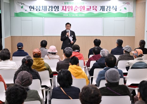 개강식에 참석한 전진선 양평군수는 “양평의 유일한 자원순환현장인 양평자원순환센터에서 순환 경제의 첫 걸음을 뗐다”며 “자원순환을 통해 더욱 깨끗하고 매력넘치는 양평의 자연환경을 보전할 수 있도록 군민들의 많은 관심과 참여를 바란다”고 전했다.