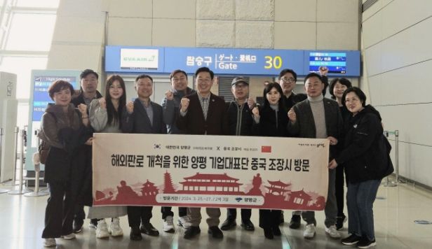 (정도일보) 전진선 양평군수가 25일 양평군청 대표단을 비롯해 4곳의 지역 기업 대표들과 함께 자매도시 중국 조장시 방문에 나섰다.