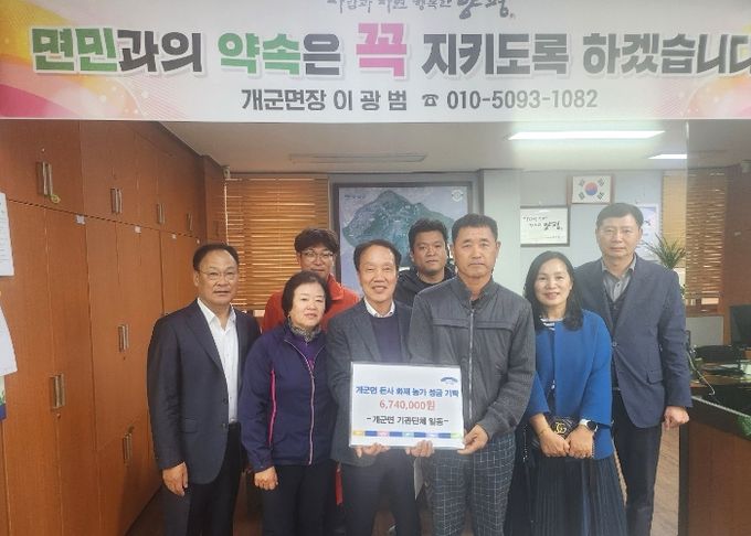이광범 개군면장은 “화재 피해 현장을 보고 안타까움을 느꼈는데 개군면 주민들과 기관·단체에서 발벗고 나서서 모금 운동에 적극 동참해 주심에 감사드리며 피해 주민의 빠른 일상 회복에 조금이나마 도움이 됐으면 좋겠다”고 말했다.