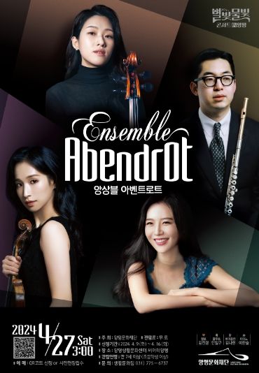 (정도일보) 양평문화재단은 ‘별빛물빛 콘서트 in 양평’ 4월 무대로 앙상블 아벤트로트의 클래식 공연을 27일 토요일 15시 양평생활문화센터 2층 씨어터 양평에서 선보인다고 밝혔다.