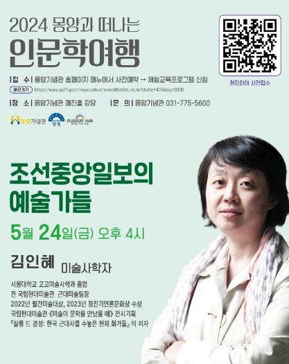 또한, 전시 연계 인문학 특강 ‘조선중앙일보의 예술가들’은 미술사학자이자 전 국립현대미술관 근대미술팀장인 김인혜가 조선중앙일보 학예부에서 활동했던 문예인들 중심으로 1930년대 문학예술의 흐름을 짚어본다.