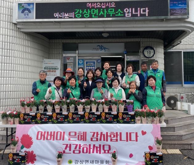 이번 행사는 새마을의 날 기념 재활용 모으기 경진대회 및 폐비닐 수거로 발생한 수익금으로 재원을 마련했으며, 강상면 새마을회 회원들은 36가구를 직접 찾아가 카네이션과 두유를 전달하는 이웃사랑을 실천했다.