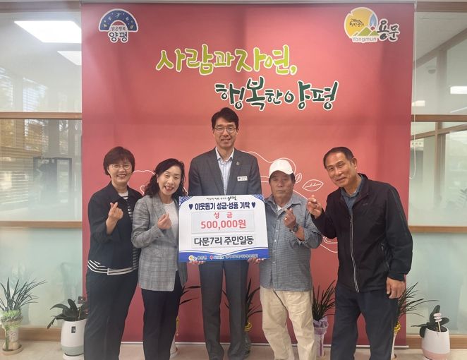 권용진 용문면장은 “어려운 이웃을 위해 따뜻한 마음을 나눠주신 다문7리 주민들에게 진심으로 감사드린다”며 “앞으로도 복지 사각지대를 발굴해 온기가 가득한 용문면을 만들기 위해 노력하겠다”고 말했다
