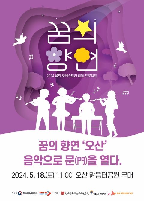 (정도일보) 오산청소년오케스트라가 ‘꿈, 사랑, 희망'을 주제로 오산 시민들을 찾아간다. 5월 18일 오전 11시, 2024 꿈의 오케스트라 공연형 프로젝트 '꿈의 향연'은 맑음터 공원에서 개최된다.