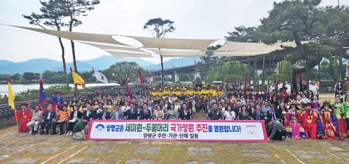 이날 행사는 양평문화원 소속 대취타대 22명, 한양대학교 미래인재교육원 원미자 주임교수의 원미자 무용단 40여 명, 오은명 교수의 한뫼국악예술단의 궁중무용 8명, 양평 사물놀이패 ’느닷‘ 5명, 풍물놀이패 등 200여 명의 축하공연으로 이뤄졌다.