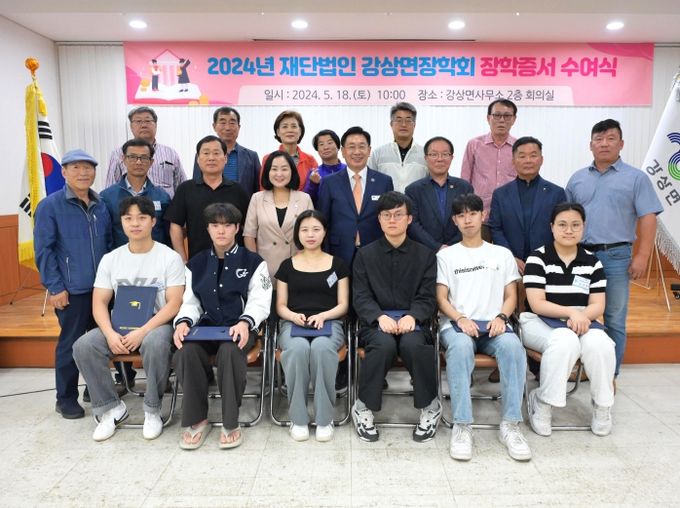 (정도일보) 재단법인 강상면장학회는 지난 18일 강상면사무소 회의실에서 ‘2024년도 (재)강상면장학회 장학증서 수여식’을 열었다.