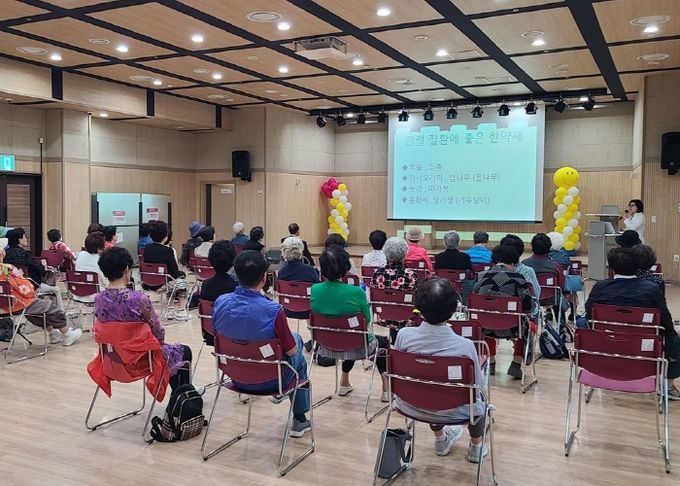 이날 어르신 50여 명이 참여한 가운데 한의약 건강증진실 한의사, 건강생활지원센터 운동처방사 등 전문 인력이 노인의 건강관리를 위한 한의약 건강강좌 및 운동프로그램을 진행했다.