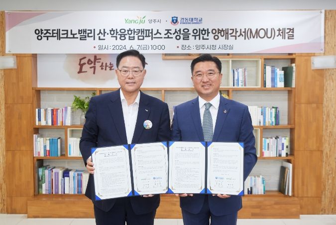(정도일보) 양주시는 7일 오전 시장실에서 경동대학교와 양주테크노밸리 활성화를 위한 ‘경동대학교 산학융합지구(산·학·연 융합 캠퍼스) 조성에 관한 양해각서(MOU)’를 체결했다고 밝혔다.