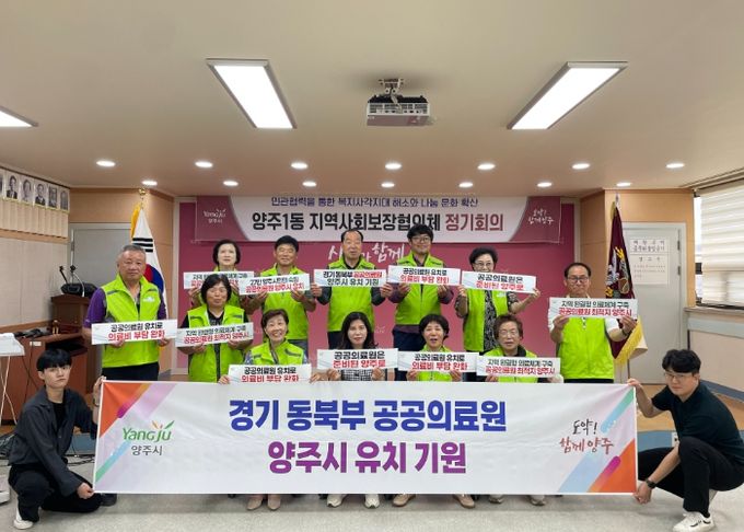 양주시 양주1동이 11일 행정복지센터 3층 회의실에서 양주1동 지역사회보장협의체(위원장 강인옥)와 함께 경기 동북부 공공의료원 유치 응원 캠페인을 실시했다고 밝혔다.