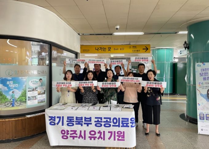 이번 캠페인에는 박혜련 동장, 통장협의회원, 양주1동 직원이 참석했으며, 양주역 이용객들에게 경기 동북부 공공의료원 유치 서명 참여를 독려했다.