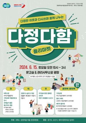 (정도일보) 오산시는 오는 15일 세마동 e-편한세상 아파트에서 다정한 이웃과 다시 쓰며 함께 나누는 『다정다함 플리마켓』을 개최한다.