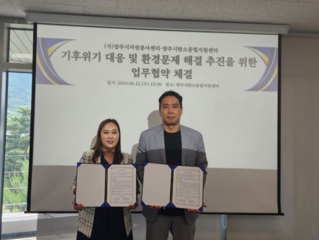 (정도일보) 사)양주시자원봉사센터는 지난 12일, 양주시 탄소중립지원센터와 기후 위기 대응 및 환경문제 해결 추진을 위한 업무협약을 양주시 탄소중립지원센터에서 체결했다고 밝혔다.
