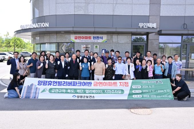 (정도일보) 양평군이 17일 양평 휴먼빌 리버파크어반 아파트를 양평군 제4호 금연 아파트로 지정하고 현판식을 가졌다.