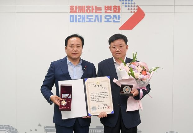 (정도일보) 오산시는 지난 17일 6·25전쟁 참전유공자인 고(故) 박지만 상사의 유가족에게 금성화랑무공훈장과 훈장증을 전수했다.