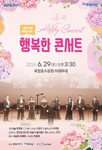 행사의 시작을 선보이는 첫 번째 공연 ‘행복한 콘서트’는 오는 29일 오후 3시 30분 관내 옥정홍수공원 야외무대에서 펼쳐지며 한국 가곡, 오페라, 뮤지컬 등 다양한 프로그램으로 구성됐다.