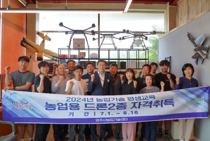 (정도일보) 양주시는 기후변화 대응 병해충 방제 등 농업용 드론 활용 증대를 통해 노동력 및 농가경영비 절감을 위한‘2024년 농업기술 평생교육(농업용 드론 2종 조종사 자격취득과정)’개강식을 가졌다고 1일 밝혔다.