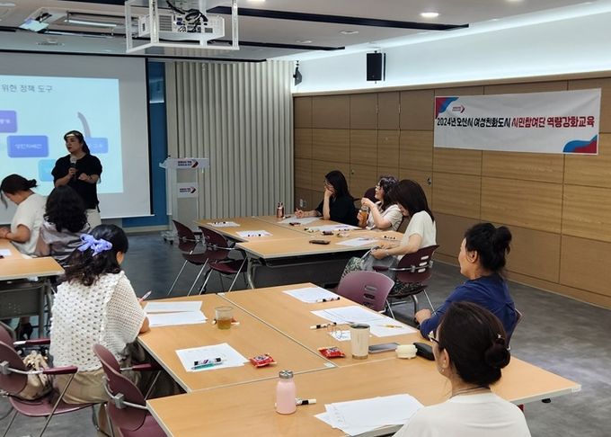 (정도일보) 오산시는 여성친화도시 지정 3년 차를 맞이하면서 새롭게 위촉된 3기 여성친화도시 시민참여단 24명을 대상으로 지난달 3회에 걸쳐 오산시청 상황실과 물향기실에서 역량강화 교육했다.