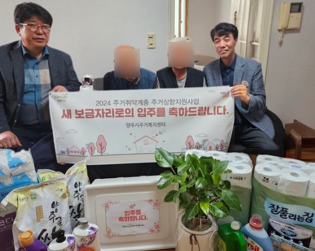 또한, 양주시 도시재생과, 백석읍 행정복지센터, 관내 사회단체 등의 후원으로 가전, 가구 등 생활필수품과 도배장판, 입주 청소 등도 지원받게 됐다.