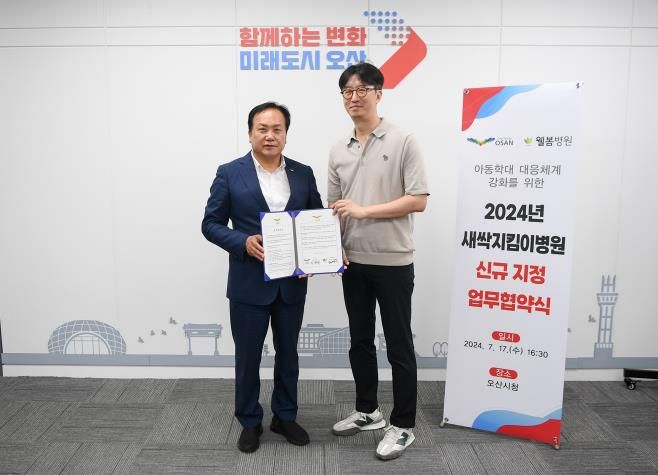 (정도일보) 오산시는 최근 수청동 소재 웰봄병원을 새싹지킴이병원으로 신규 지정하고 업무협약(MOU)를 체결했다고 22일 밝혔다.