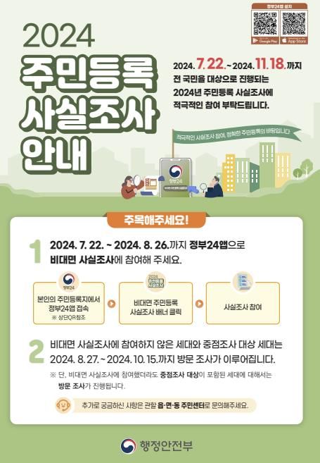 비대면 조사는 조사 대상자가 본인의 거주지(주민등록지)에서‘정부24’앱에 접속한 후 사실조사 사항에 응답하는 방식으로 진행된다.